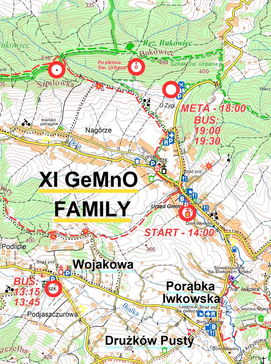 Młodzież gimnazjalną z Wojakowej i Iwkowej zachęcamy do pokonania tras sportowych, podczas których 2-3 -osobowe zespoły, po zwiedzeniu zabytkowego kościoła i obejrzeniu ksiąg sądowych wsi Iwkowa, pokonają pieszą trasę długości około 8 km wyznaczoną przez kolejne punkty kontrolne i kończącą się grillem na terenie Zajazdu „U Zygi”.