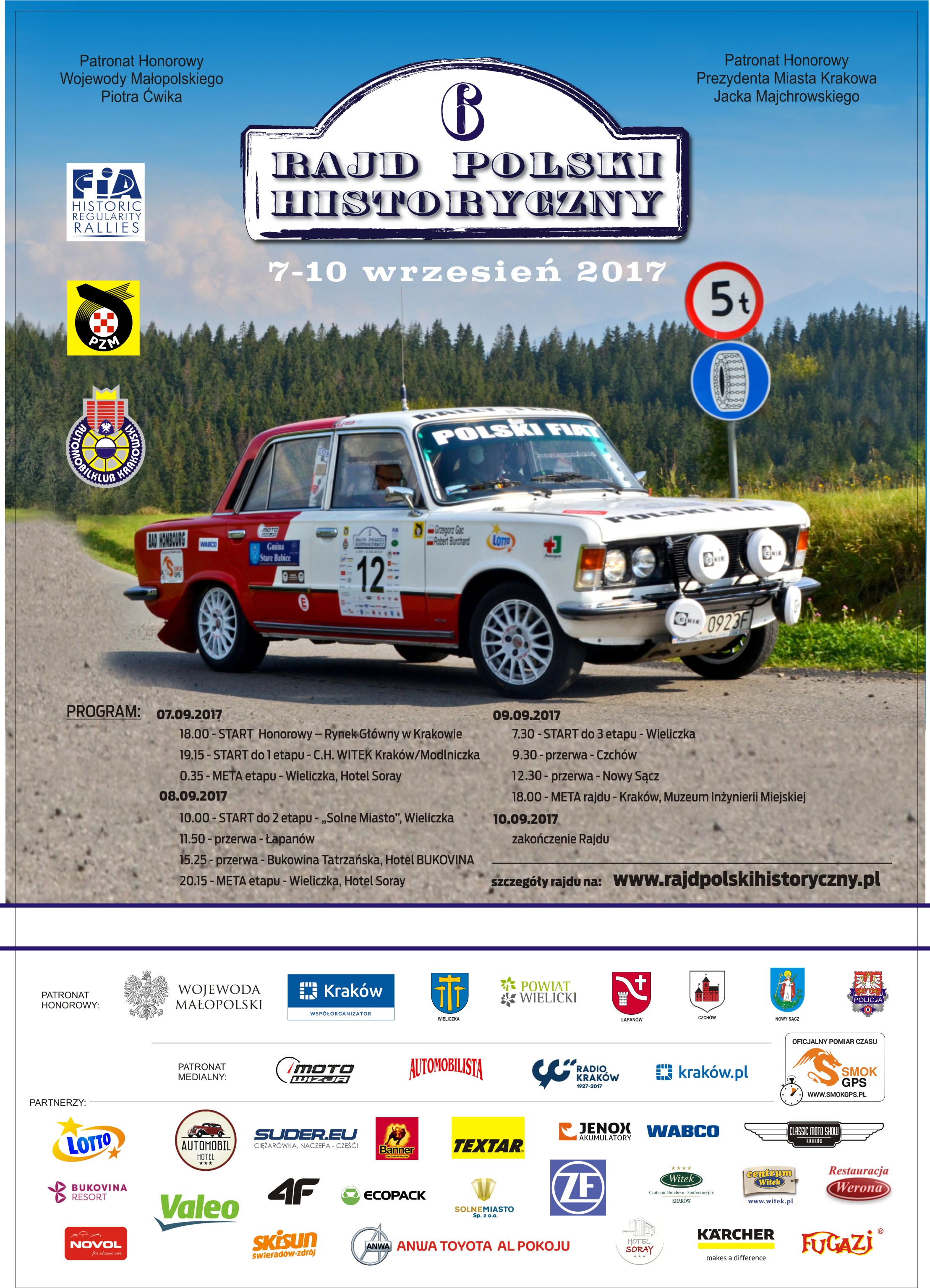 Automobilklub Krakowski w dniach 7-9 wrzesień 2017 organizuje 6 Rajd Polski Historyczny - FIA Trophy for Historie Regularity Rallies (Mistrzostwa Europy/J. jest to rajd samochodów zabytkowych w jeździe na regularność.. Samochody poruszają się w ruchu otwartym, zgodnie z przepisami ruchu drogowego, ze ściśle określoną prędkością, nie przekraczającą 50 km/h.