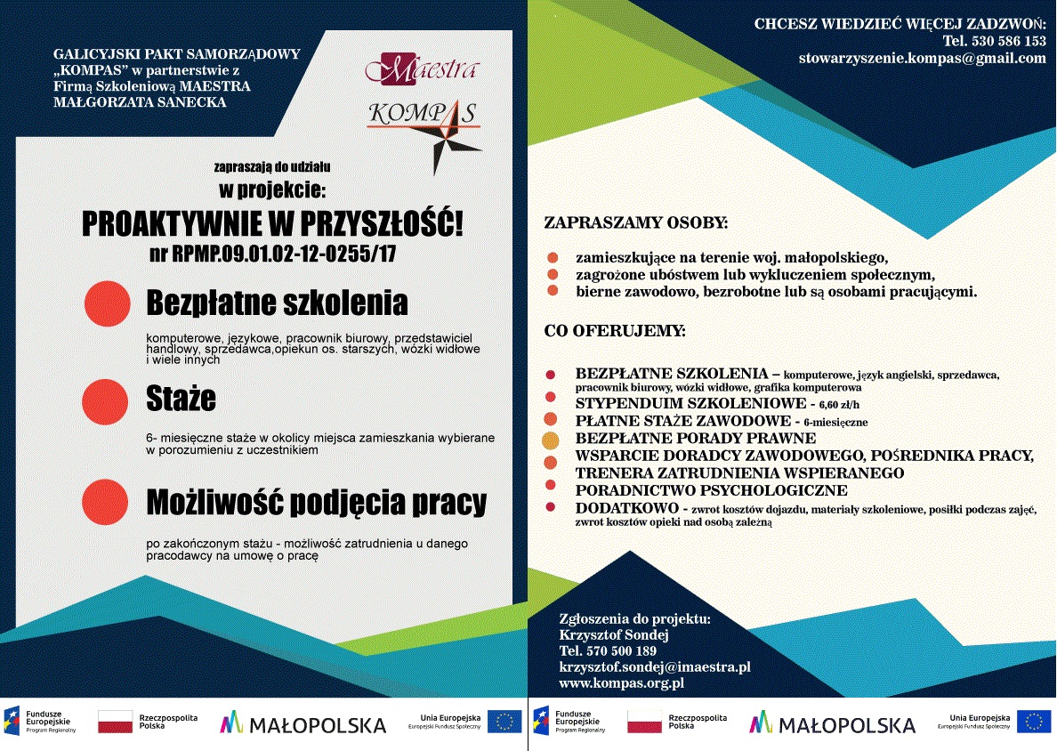 GALICYJSKI PAKT SAMORZĄDOWY „KOMPAS” w partnerstwie z Firmą Szkoleniową MAESTRA – MAŁGORZATA SANECKA zapraszają do udziału w projekcie: